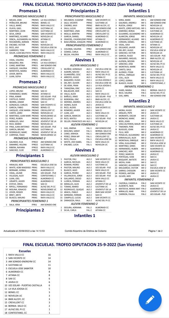 - Alfaz del Pi. XXI Trofeo Escuelas de Ciclismo de L’Alfàs Clasificaciones