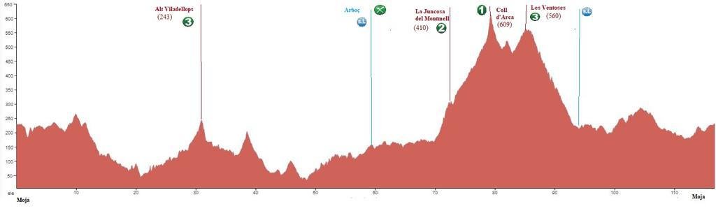 4ª ETAPA / SANT MARTI DE TOUS – LA MUNIA (CASTELLVÍ DE LA MARCA). (126 km). 2 de octubre. RUTÓMETRO