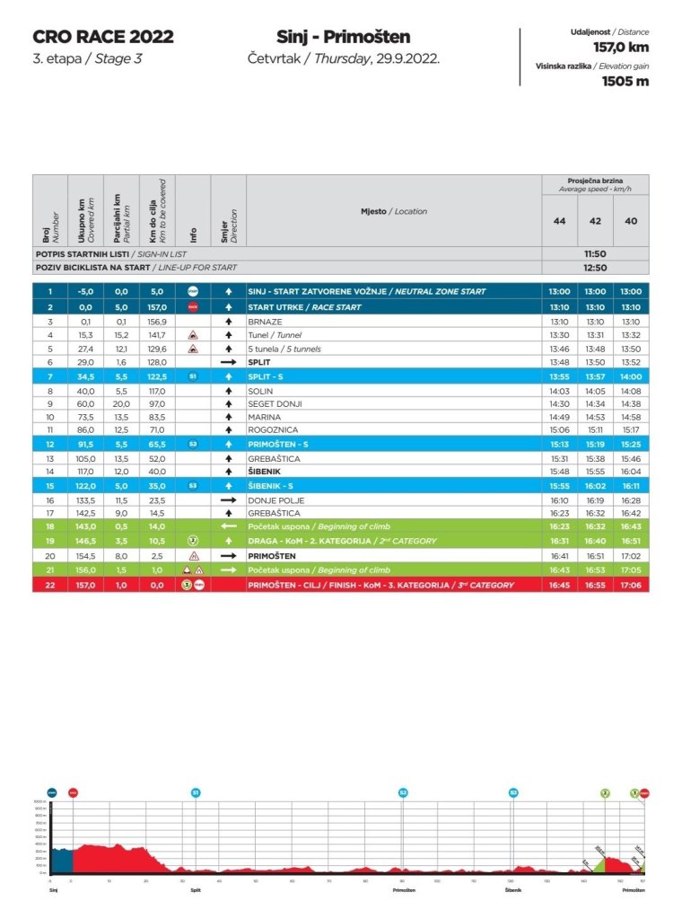 29/09 – 13:00 – 16:55. 3ª etapa: Sinj – Primošten, 157 km.