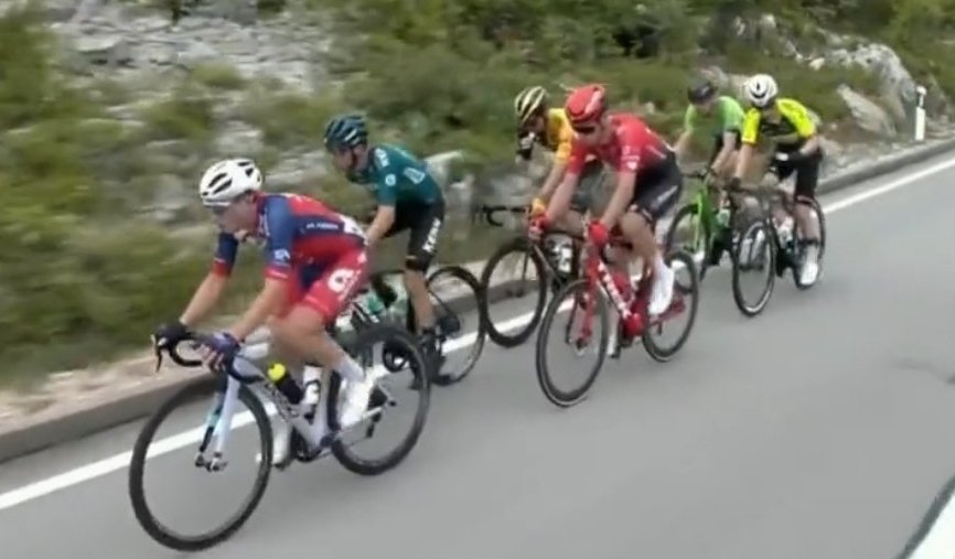 Eugenio Sánchez: «Era un día en el que sabíamos que la fuga iba a tener un poco más de margen por las diferencias de ayer en la general, que iba a estar peleada porque en el kilómetro 5 había bonificación. Y así ha sido, hasta el 30 no se ha hecho. Una vez dentro la idea era la de ir regulando y pasar los kilómetros sin gastar mucho. Ha habido un momento en el que a falta de 60 nos han cantado 4 minutos. Sabíamos que era difícil y que el final era peligroso. Pero Ineos se ha puesto a tope antes de entrar al circuito y ahí ha acabado mi aventura. A partir a trabajar para mis compañeros para que Álex y Kiko entraran en el Top 10 y se ha conseguido».