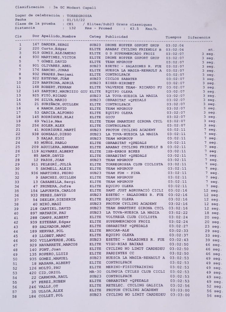 La carrera echaba el cierre a las Grans Clàssiques catalanas-6º Trofeu Joan Casedevall cuya general no sufría cambios, coronando en este 2022 a Benjamí Prades (Controlpack) como vencedor. Hoy ha sido octavo.