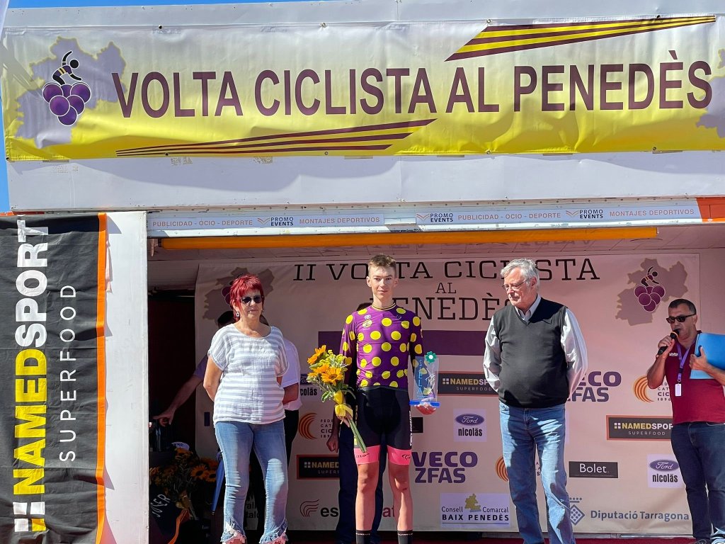 Aarón Poveda: «Venía con ganas de dar el punto y final a esta larga temporada de manera sastifactoria. Y no había mejor forma de terminar la campaña que con un buen estado de forma dejándome ver en esta Volta al Penedès en las fugas del día y consiguiendo hacerme con el maillot de la montaña como recompensa de la larga fuga en la que me he metido. Ahora, a descansar y a afrontar el cambio de categoría a sub 23».