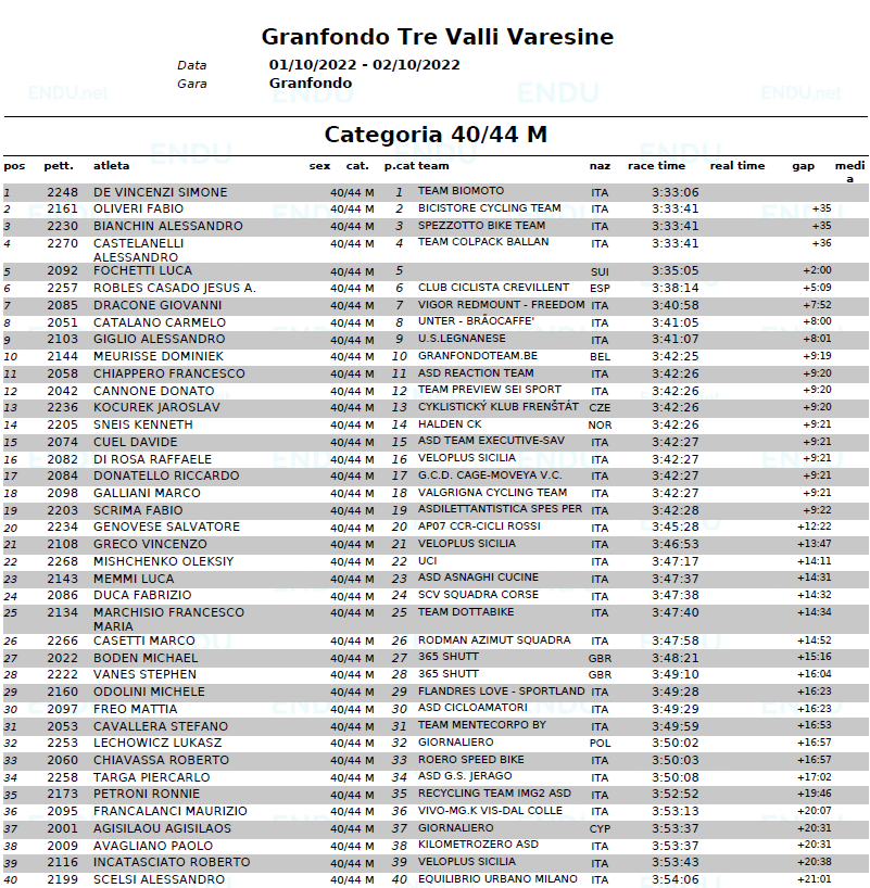 Jesús A. Robles (CC Crevillente) consiguió el domingo la sexta plaza, en la categoría M40/44M, en el Gran Fondo Tre Valli Varesini. El italiano Simone de Vincenzi fue el ganador de esta primera prueba clasificatoria para el Mundial Gran Fondo UCI 2023 que se disputará en Glasgow. Dicha clasificación permite al corredor alicantino tener ya asegurada su participación en el Mundial que se disputará en agosto el próximo año.
