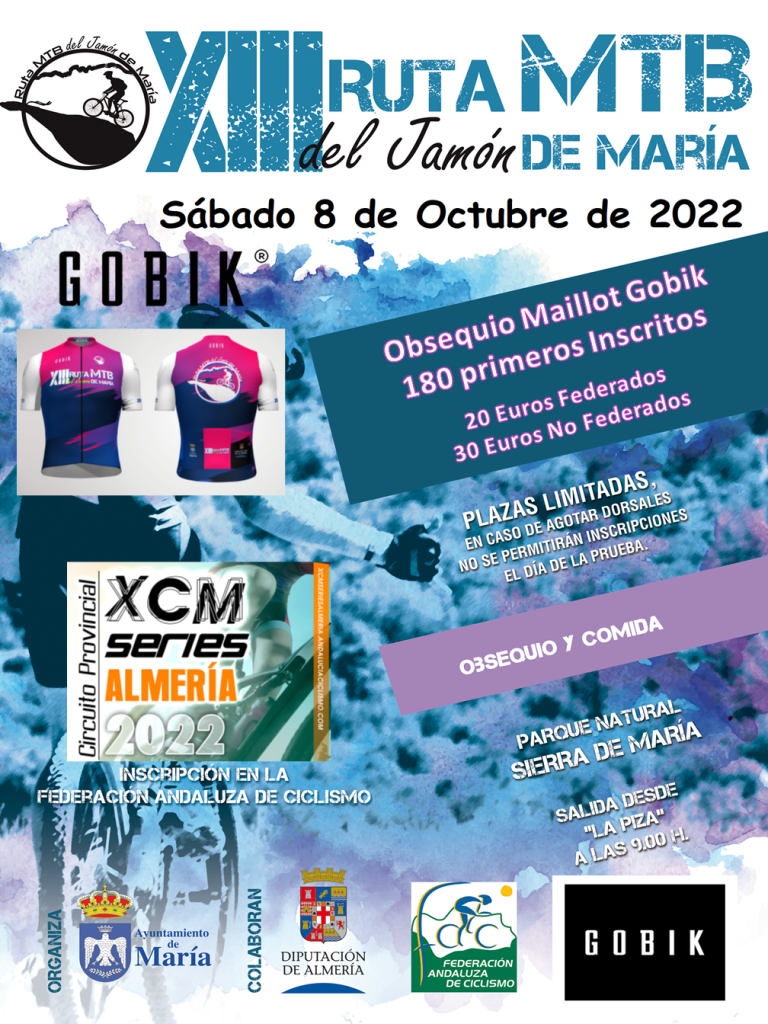 El sábado, día 8 de octubre, se disputa la XIII Ruta MTB del Jamón de María. La salida está prevista a las nueve y habrá representantes alicantinos entre los que se encuentra Antonio García (Gonvibikes). Lista de inscritos