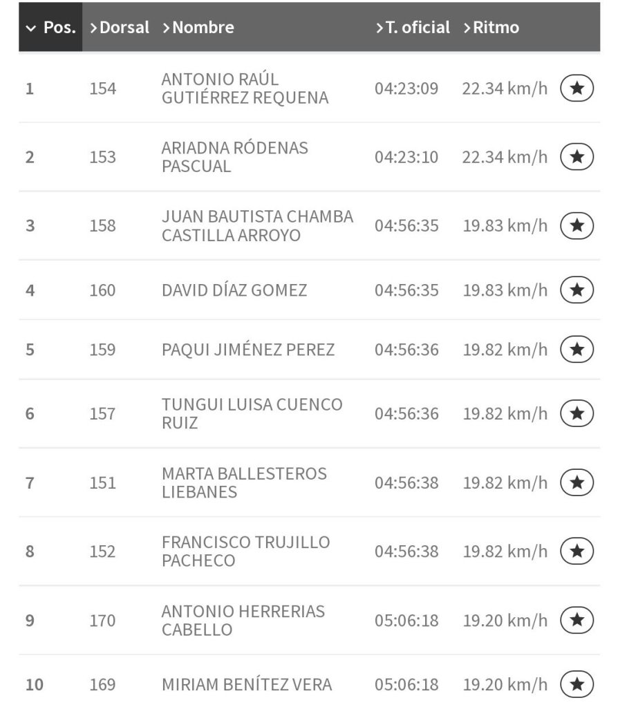 Looser (Hinwil, 33 años) ha entrado en meta con un tiempo de 3 horas, 42 minutos y 32 segundos, a una media de 26,4 km/hora, se anticipó Looser por 6 segundos ante Faus. El tercero, Xavi Ariza, perdió 5 minutos, el profesional de ruta Luis Ángel Maté (Euskaltel Euskadi) 7 y Josep Betalú, cuatro veces ganador de la Titan marroquí nada menos que 15.