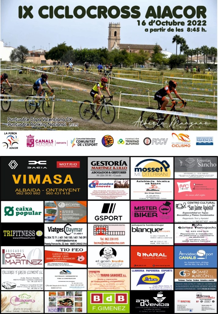 Picasset y Aiacor acogen este fin de semana la tercera y cuarta jornada de la Copa Valenciana de Ciclocross. El sabado, 15 de octubre, se disputa, a partir de las 8.45 horas, el XIV Trofeo Ciclocross Ajuntament de Picassent organizado por el Bici Club Picassent. Lista de inscritos