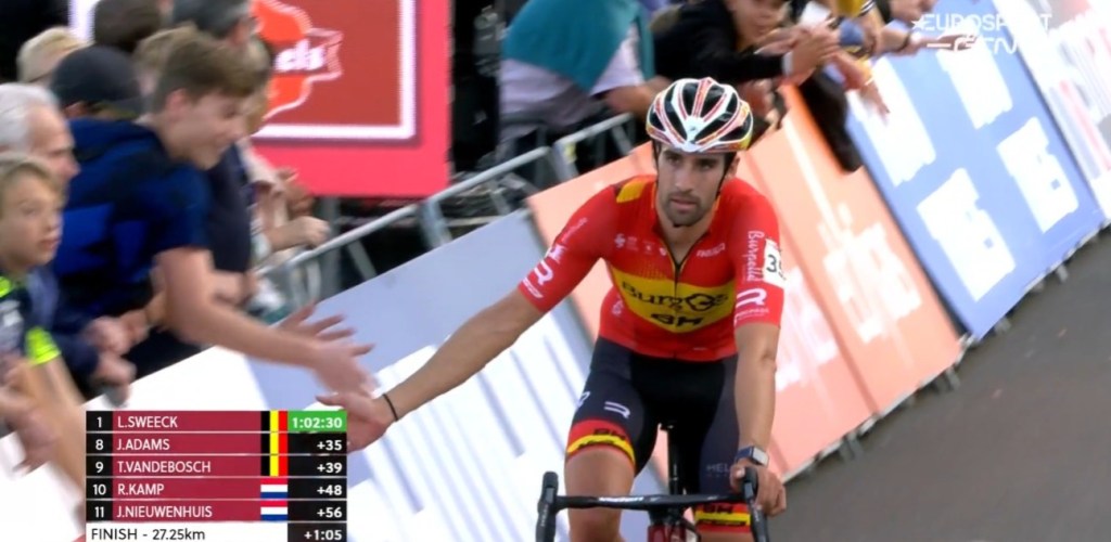 Laurens Sweeck (Crelan-Fristads) ganó la prueba de la Copa del Mundo de Ciclocross disputada hoy Maasmechelen. El belga se escapó solo en la quinta vuelta y logró la victoria en solitario. El holandés Lars van der Haar (Baloise Trek Lions) y Eli Iserbyt (Pauwels Sauzen-Bingoal) quedaron en segundo y tercer lugar respectivamente. Felipe Orts (Burgos BH) ha finalizado en el puesto 12.