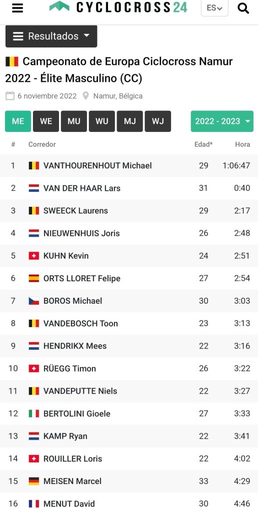 Michael Vanthourenhout es el nuevo campeón europeo de ciclocross entre la élite masculina. El belga libró bonito duelo con Lars van der Haar , que tuvo que conformarse con la plata. Laurens Sweek fue tercero. Fenomenal carrera de Felipe Orts (Burgos BH), que ha terminado en el puesto sexto. Un pinchazo y una caída le han privado de subir al podio.