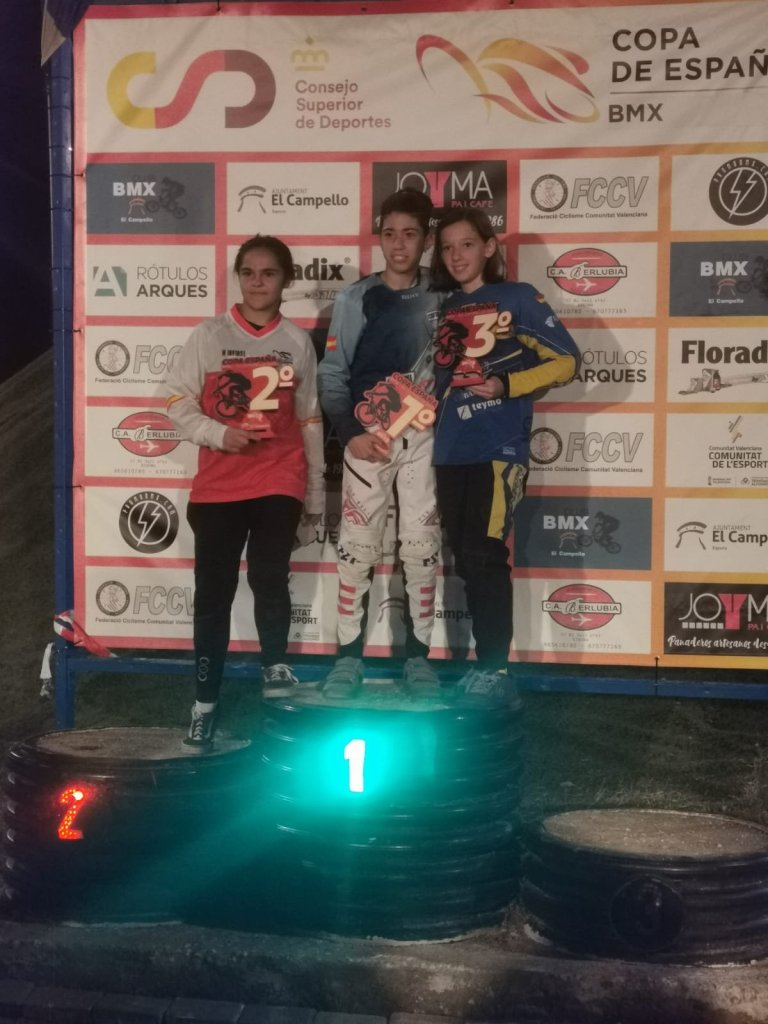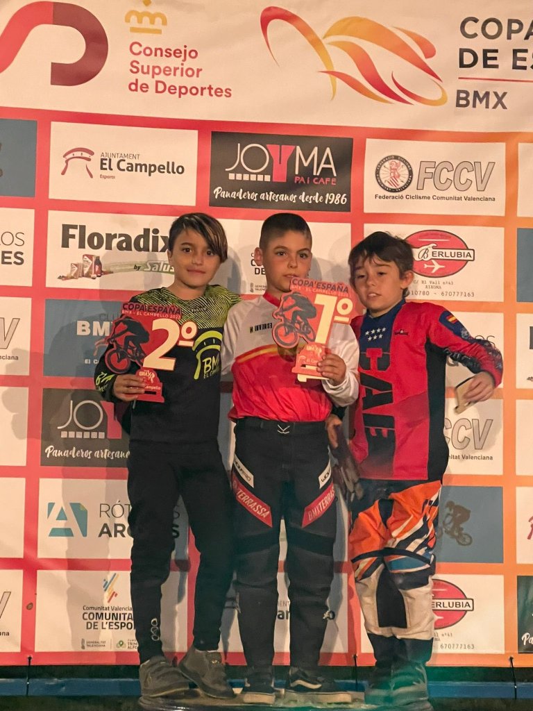 El Campello ha acogido hoy la primera de las dos pruebas de la Copa de España de BMX, que determinarán este fin de semanas a los próximos ganadores de esta temporada en el citado Torneo en cada una de las categorías establecidas. Los vencedores de la competición de hoy han sido: Fran Calvo (El Campello), en Hombres 13 a 16; Alexander Londoño (BMX Olímpico), en Hombres 30 a 39; Josep Blasco (Bocairent), en Hombres 40 a 49; Josep Escayola (Mataró), en Hombres 50 y más; Daniela Rubio (San Vicente), en Mujeres de 30 a 39; Laia Quattrone (Adrenalina) y Mateo Javier Nieto (Olímpico), en Promesas 5 y 6; Eric Serrano (Terrassa) y Priscila Álvarez (Energy), en Promesas 7 y 8; Xabi Cherro (Alcoy) y Nerea Hernández (Valdejalón), en Principiantes; Aitor Nicolás (San Vicente) y Chiara Muñoz (Bike Park), en Alevines; Iván de la Cruz (Activo) y Sonia Recuero (Activo), en Infantiles; Alejandro Verdú (Bike Park) y Stefanie Verbes (Independiente), en cadetes; Pablo Sánchez (Benidorm), en Challenge 17 a 19; Aarón García (Talavera), en M30; Adriana Domínguez (Independiente), en conjunto femenina; y Álvaro José Díaz (Bike Park), en júniors.
