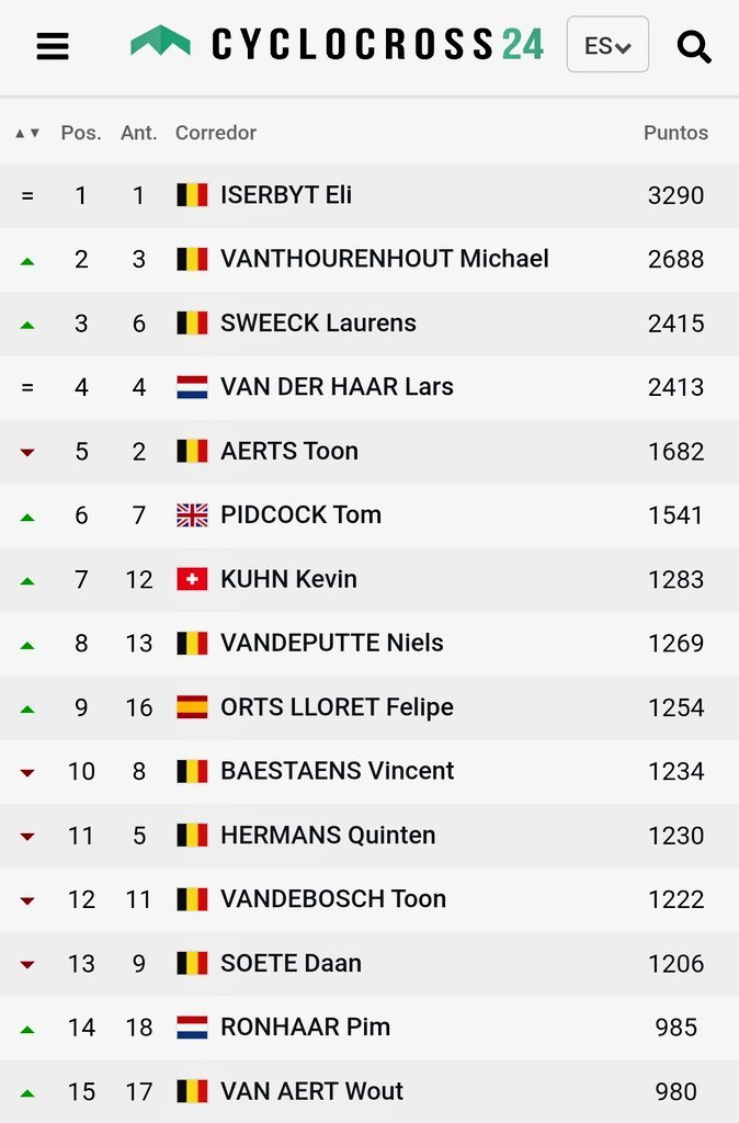 El ránking mundial de la UCI sitúa a Felipe Orts ya dentro del Top 10 en una destacada novena posición. Los buenos resultados cosechados esta temporada en los que destaca la sexta plaza en el Europeo de Namur o la misma posiciòn en la Copa del Mundo en el CX BeekseBergen le han permitido ir escalando hasta esa privilegiada posición del Ranking UCI de ciclocross. Fue también segundo en Ardooie tras Quinten Hermans, cuarto en Wooorden y séptimo en Ruddervoorde.