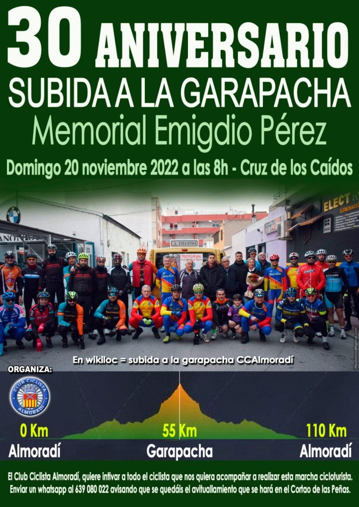 El Club Ciclista Almoradí ha celebrado hoy el 30 aniversario de su tradicional salida social que una vez más se ha disputado bajo la denominación de Subida a la Garapacha-Memorial Emigdio Pérez.