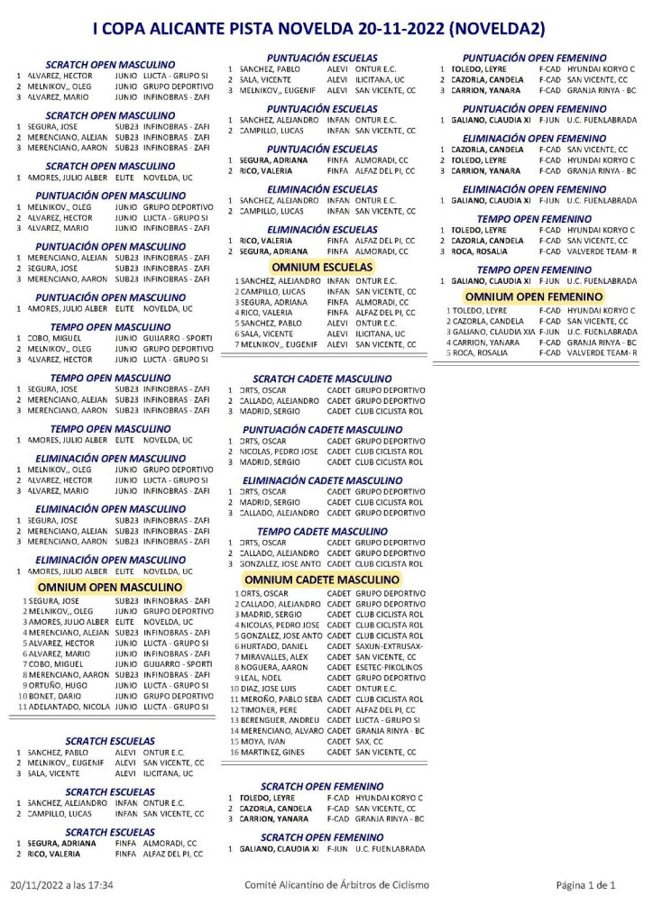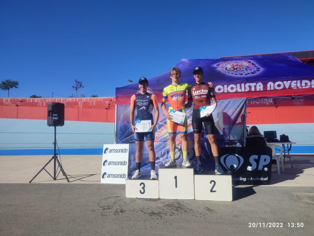 El élite Julio Alberto Amores (UC Novelda); el sub23 José Segura (Infinobras-Zafiro); junto a los júniors Claudia Xiangfeng y Oleg Melnikov (GD Llopis); y los cadetes Óscar Orts (GD Llopis) y Leyre Toledo (Hyunday Koryo Car-Dstrel) han sido los ganadores de la tercera manga de la Copa de Alicante de Pista 2022 AM Sonido-Sporting Pursuits, celebrada esta mañana en el velódromo Luis Navarro Amorós de Novelda.