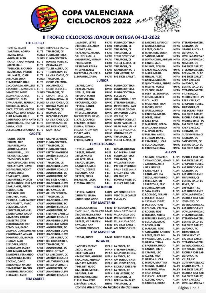 - Picassent-. XIV Trofeo Ciclocross Ajuntament de Picassent. Clasificaciones