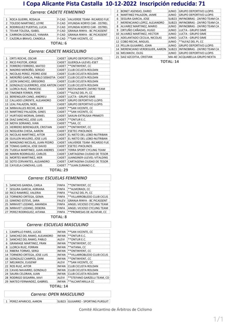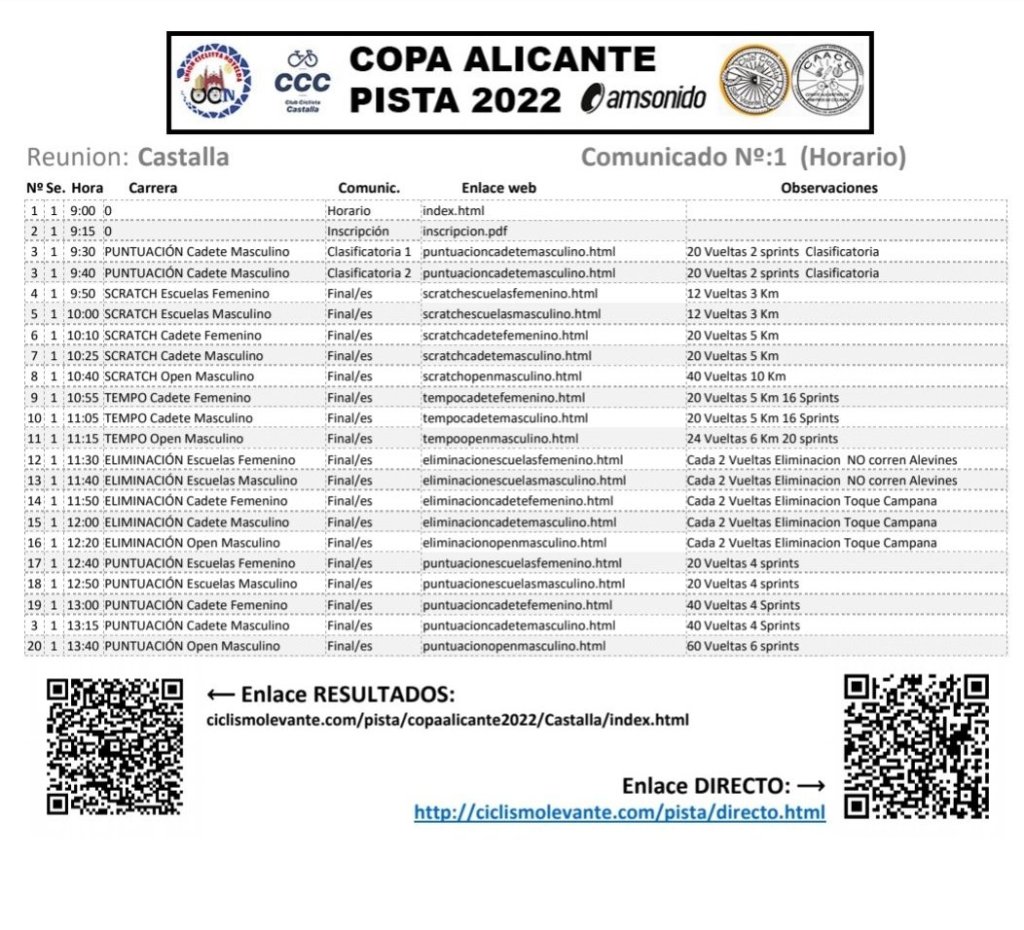 El sábado, día 10 de diciembre, se disputa la quinta prueba puntuable de la Copa Alicante de Pista estrenando el remodelado recinto del Velódromo Municipal de Castalla. En el IV Trofeo de Pista Ciudad de Castalla el Omnium espera a 61 ciclistas inscritos. Será la última prueba de la Copa que se dispute en Castalla organizada por Club Ciclista en esta temporada 2022, un número que esperan mantener e incluso aumentar de cara a la próxima temporada.