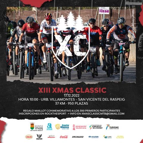 El sábado, día 17 de diciembre, se disputa en San Vicente del Raspeig la XIII edición de la Xmas Classic. La prueba se inicia a las 10 horas de la Urbanización Villamontes y cuenta con una amplia participación. Serán 36.5 km de puro Mtb.