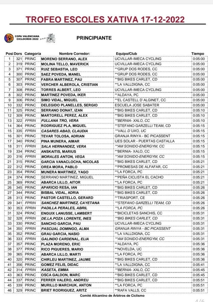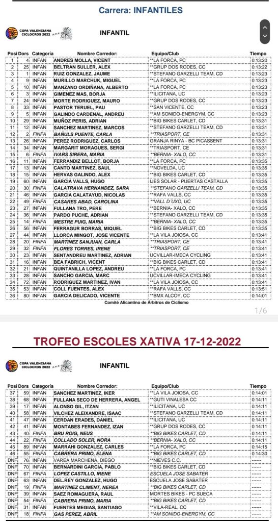 05 Diciembre – Castalla (Nacional 1.33.5). Clasificaciones