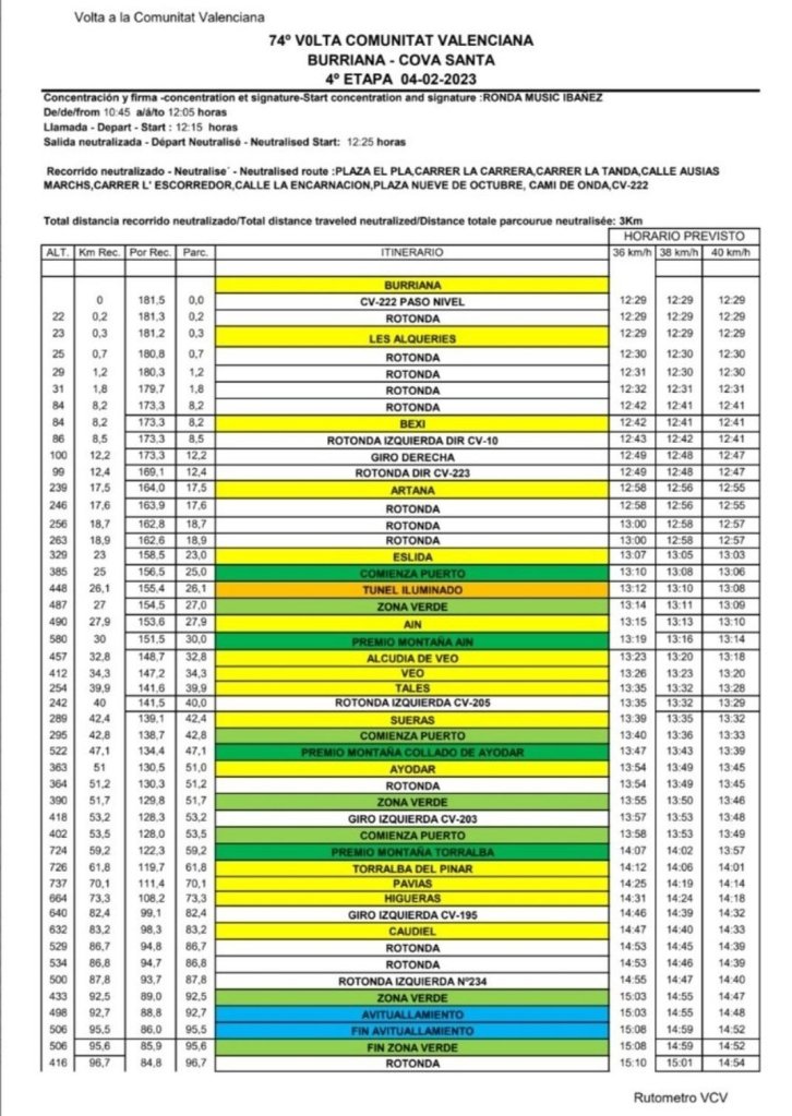 Con esta presentación, ya se conocen las dos llegadas en alto con las que contará el recorrido de la VCV 2023. La primera, el 2 de febrero en Benissa; y esta segunda el 4 de febrero en Altura. Y es que, como ya ha reconocido Ángel Casero estos días, el recorrido de esta 74º edición está diseñado para que la montaña sea la gran protagonista, con poco margen para los sprints masivos.