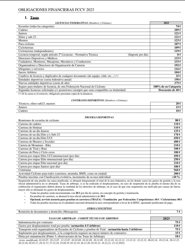 La FCCV ha abierto el plazo para la tramitación de licencias de la temporada 2023. Las tasas van de los 74 euros para las Escuelas a los 123 de los Máster.