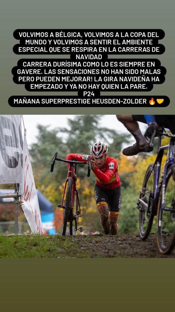 El vilero ha iniciado hoy un calendario de 7 pruebas íntegramente en Bélgica antes de disputar el Campeonato de España a mediados de enero. Tras la cita de la Copa del Mundo de Gavere de hoy llegan las carreras del Superprestige en Zolder el día 27 así como la de Diegem, la jornada del 28. No podrá disfrutar del final de año, ya que el propio día 1 de enero se abrirá 2023 con el X2O Trofee de Baal, el de Herentals el día 3 y para cerrar esta gira navideña las pruebas de Superprestigio de Gullegem y la Copa del Mundo de Zonhoven el fin de semana del 7 y 8 de enero.