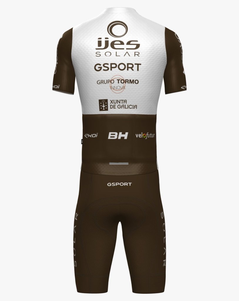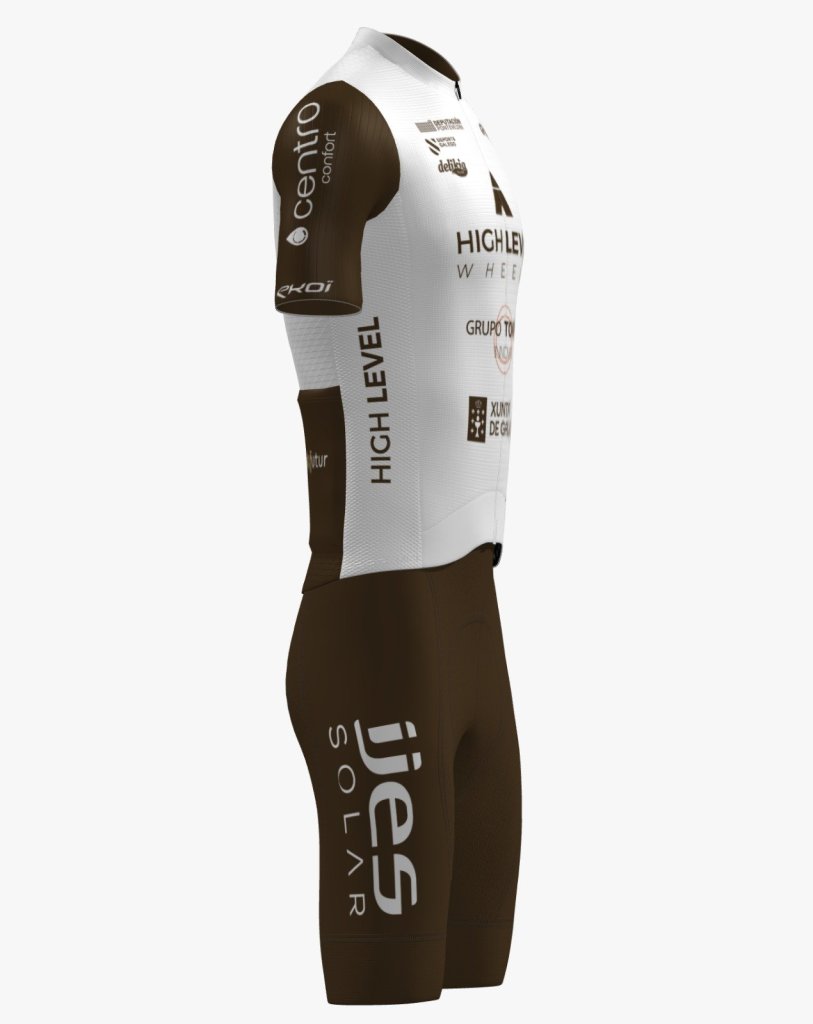 La formación pontevedresa pasa a lucir tonos blancos y marrones y su sponsor principal es la marca High Level Wheels, una empresa española creada por tres ex ciclistas profesionales y que comercializa productos de carbono de máxima calidad para ruta y mountain bike