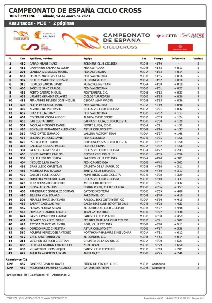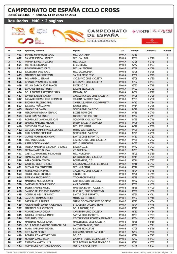 El domingo, 15 de enero, se disputa la jornada final del Campeonato de España de CX. Será el turno para las pruebas Júnior masculina; las Élite, Sub23 y Junior femenina; y para la Élite masculina con Felipe Orts como gran favorito para conseguir su quinto maillot rojigualdo.