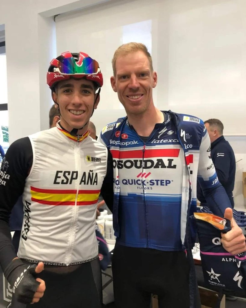 Héctor Álvarez (Infinobras-Grupo Sime) ha tenido la oportunidad de realizar en Calpe una concentración de una semana con el equipo profesional Soudal-Quick Step. En vísperas de debutar como júnior ha vivido en primera persona el segundo Training Camp de la temporada con la escuadra belga en la que estaba el bicampeón del mundo Julian Alaphilippe. El cuartel general estaba montado en el hotel Suitopia y no acudieron durante su estancia los corredores que van a iniciar la campaña en la Vuelta a San Juan o en Australia. “Es una experiencia que no voy a olvidar nunca que me han invitado a vivir. Algo inolvidable. Todos me han ayudado y me han tratado como un corredor más. He podido aprender un poco más de este bonito deporte. Es impresionante poder estar comiendo, cenando, desayunando o hablando con tus ídolos”, comenta el ciclista benidormense.
