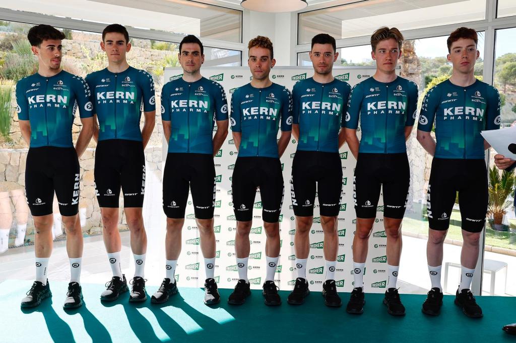 Eugenio Sánchez se ha presentado esta mañana junto al Equipo Kern Pharma en las instalaciones del Blue Line Hotel de La Vila Joiosa. Un acto que ha contado con la presencia de patrocinadores, medios de comunicación y amigos. El exciclista Pedro Delgado ha sido el encargado de realizar la puesta de largo del equipo navarro, que servido para poner el broche a una semana de intensos entrenamientos en tierras alicantinas y que dará paso a una temporada 2023 que se pronostica apasionante. «Ya tengo ganas de que esto empiece», insiste Eugenio Sánchez.