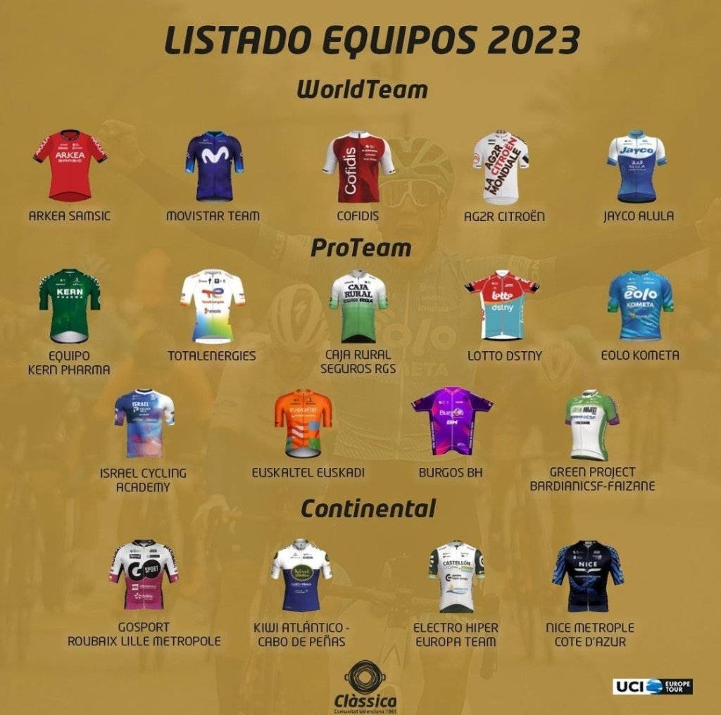 Entre los equipos participantes en la Clàssica, que marca el inicio de la temporada profesional masculina en Europa, destacan cinco de la categoría UCI World Team, entre ellos el equipo español Movistar Team, los franceses Cofidis, Arkea Samsic y AG2R Citroën Team y los australianos Team Jayco AIUla. Además, se sumarán a esta cita deportiva otros nueve equipos de categoría UCI ProTeam.