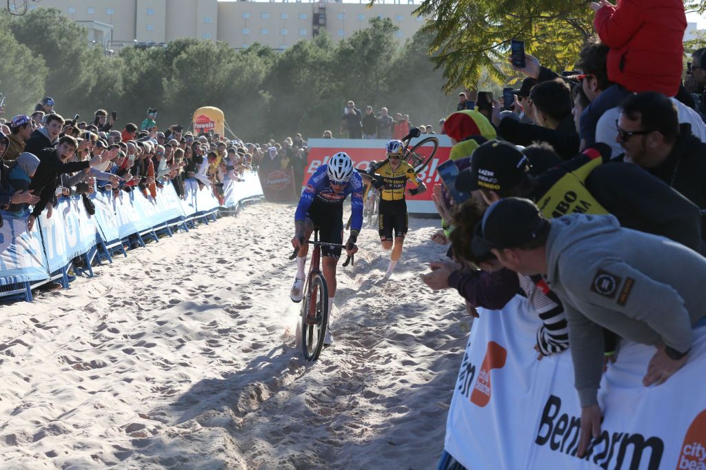 Con las 13.000 almas que llenaban el circuito de Benidorm entregadas a la causa, la carrera Elite masculina, con Wout van Aert, Mathieu Van der Poel y Tom Pidcock como grandes reclamos, no decepcionó. Fue el campeón del mundo el que, en su última carrera de la temporada –no defenderá el arcoíris en Hoogerheide– abrió el fuego, intentando poner tierra de por medio desde el primer giro.