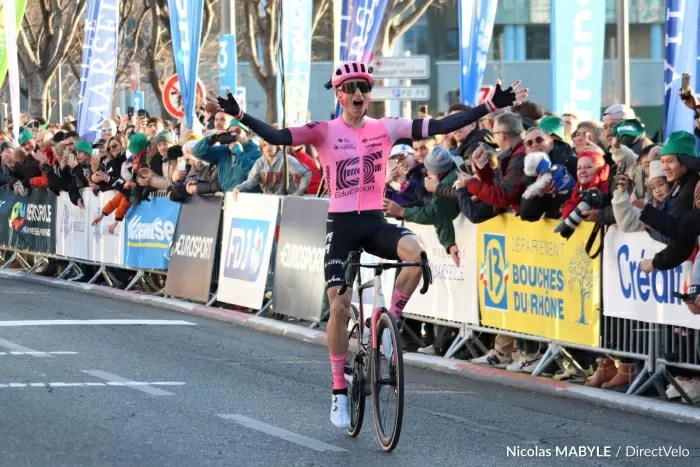 Neilson Powless (EF Education-EasyPost) ganó este domingo en solitario el 45º Gran Premio de Marsella-La Marsellesa (1.1), la primera prueba de la Coupe de France FDJ. Después de 167,8 kilómetros de carrera, el estadounidense estaba por delante de Valentin Ferron (TotalEnergies) y Brent Van Moer (Lotto-Dstny). Powless sucede al belga Amaury Capiot (Team Arkéa-Samsic) en el palmarés.