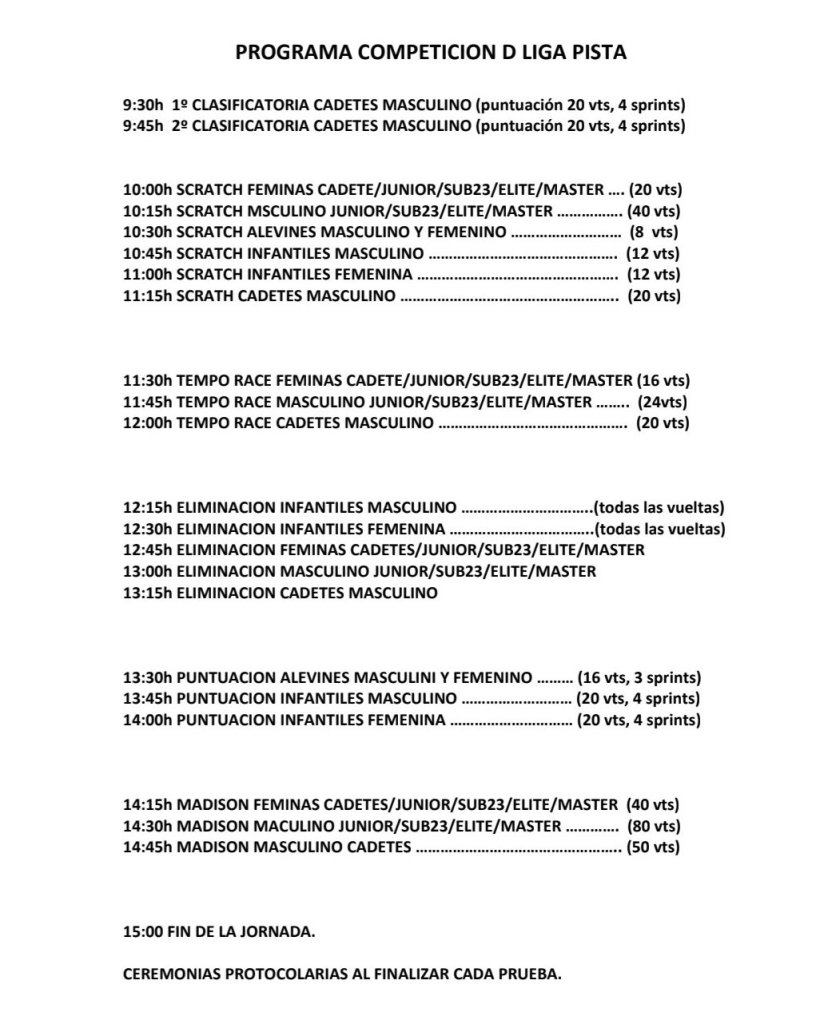 - Categorías: Sub23 Fem., Sub23, Master 60 Fem., Master 60, Master 50 Fem., Master 50, Master 40 Fem., Master 40, Master 30 Fem., Master 30, Junior Fem., Junior, Infantil Femenino, Infantil, Elite Fem., Elite, Cadete Fem., Cadete, Alevin Femenino, ALEVIN
