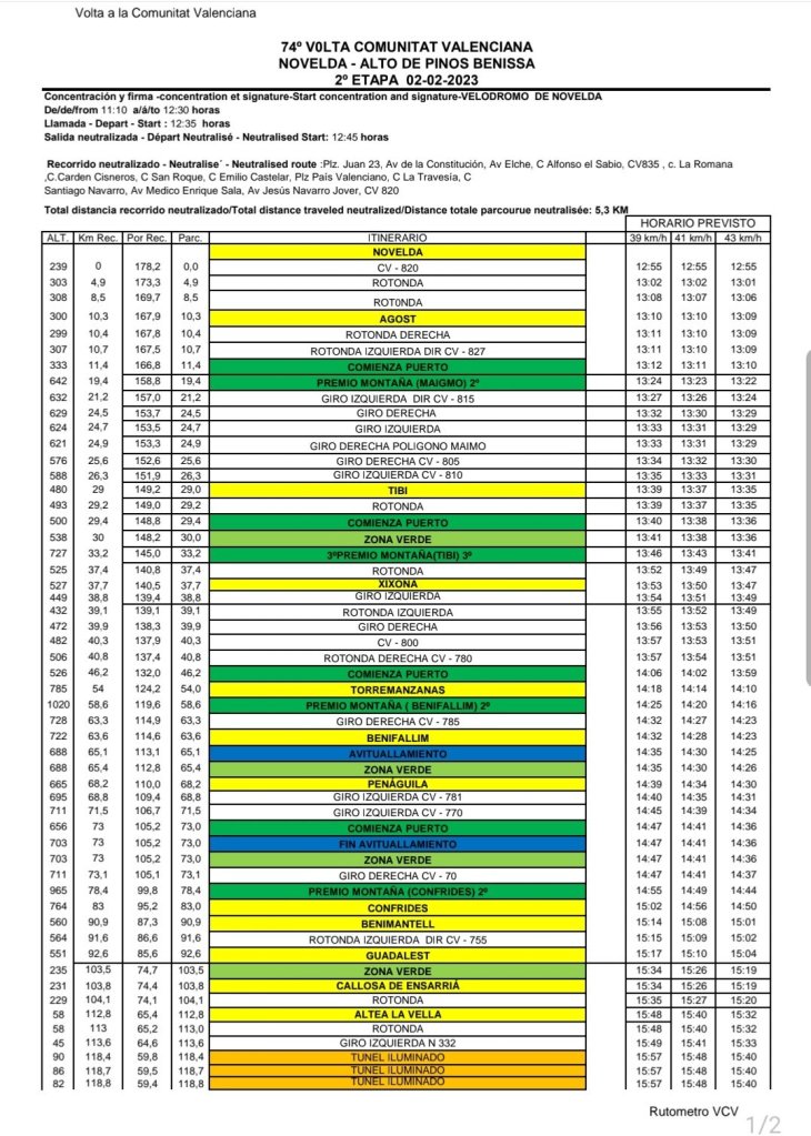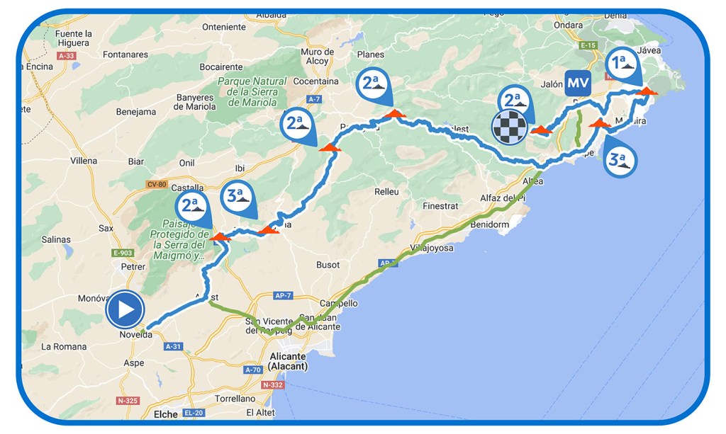 2ª: Jueves 2 febrero. Novelda 12:55-Benissa 17:03, 177 kms