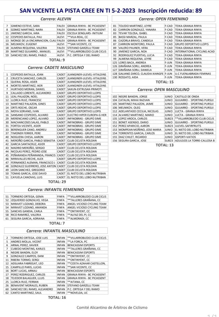 El domingo se disputa en el Velódromo Manuel Guijarro el VIII Trofeo Pista «San Vicente del Raspeig cree en tí». Las pruebas de la última competición de la Liga de Pista de la Comunitat Valenciana darán comienzo a las 9 horas. La lista de inscritos es de 89 de corredores.