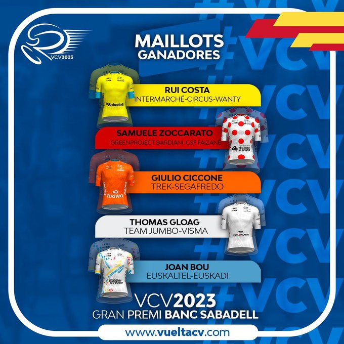 Y el que fue a por ella fue Rui Costa. El portugués, el más veterano de todos, atacó a poco de meta y se encontró en Thymen Arensma, sin opciones a la general, un aliado perfecto. Ambos entraron juntos en meta, Rui Costa delante, consiguiendo el doblete. Victoria de etapa y maillot amarillo. Detrás, producto del desconcierto, hubo una caída que generó más caos si cabe a la espera de la decisión de los comisarios sobre el tiempo a asignar a unos y otros, pues la caída fue dentro de los últimos tres kilómetros. Al final, Rui Costa primero, Giulio Ciccone segundo y Tao Geoghegan Hart tercero en, sin duda, un final de Volta a la Comunitat Valenciana que no olvidarán jamás.