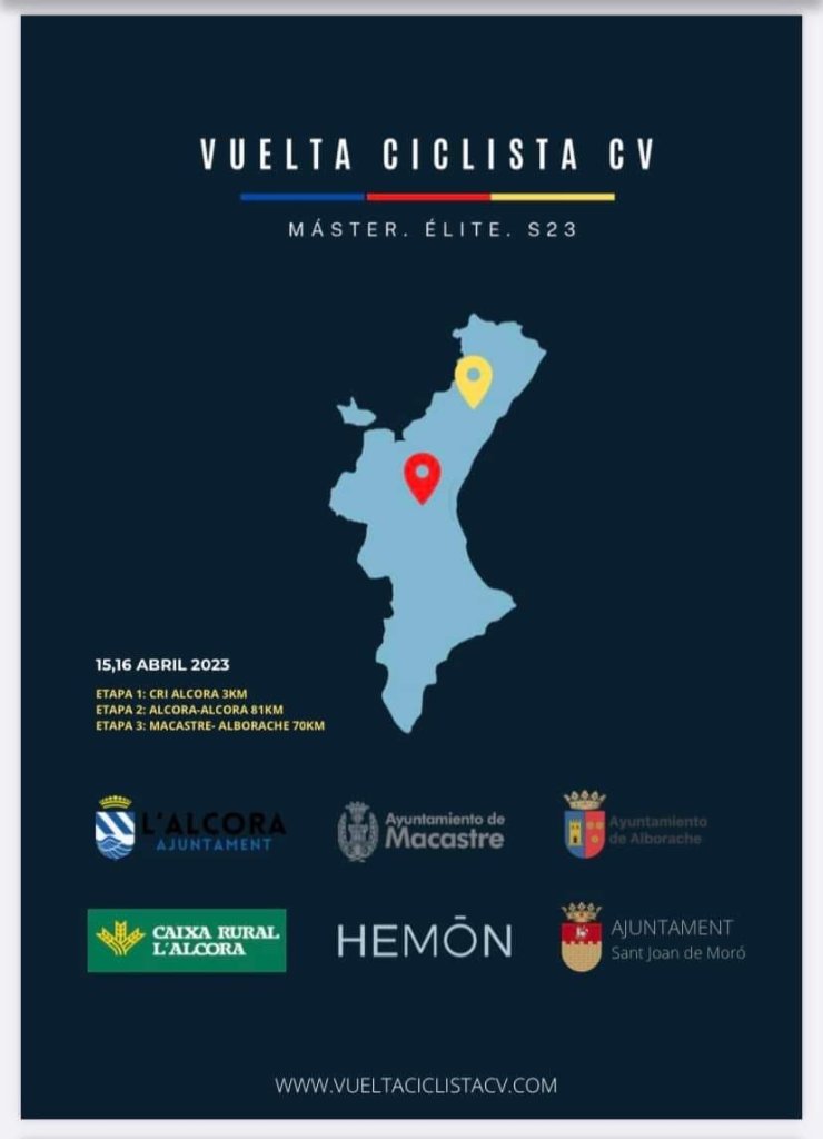 La Vuelta Ciclista CV Máster, Élite y Sub23 se disputará los 15 y 16 de abril. Comenzará en Alcora con una CRI de 3 kilómetros, a partir de las 10.30 horas, que llegará a la ermita de Sant Cristóbal. Por la tarde, a las 16.30, se correrá una prueba en línea de 81 kilómetros con salida y meta en Alcora.