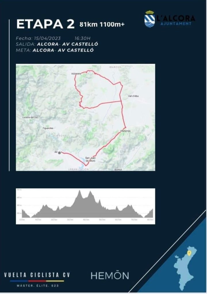 Etapa 2. 15/04/2023. Alcora. 81km. 16.30h.