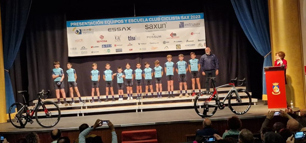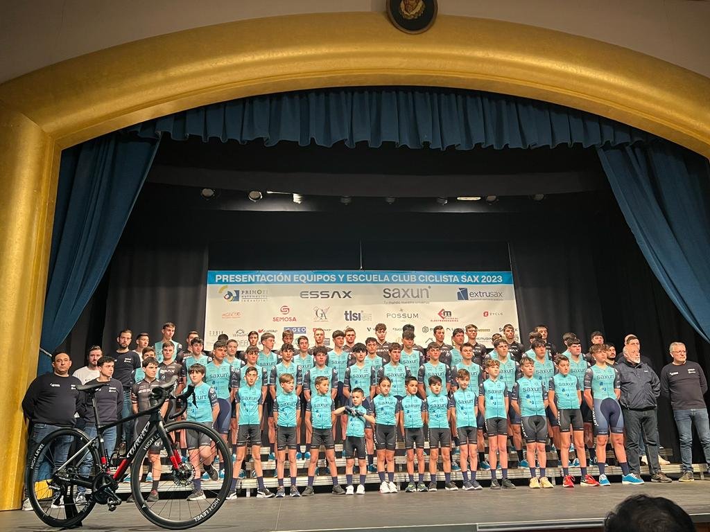 El Club Ciclista Sax se ha presentado hoy en el Teatro Cervantes de la localidad sajeña. Un nuevo proyecto muy ilusionante con corredores de Escuelas, cadetes y júniors, además de la escuadra élite y sub 23, que comienza con nuevos bríos y con el objetivo de hacer personas a través del ciclismo.