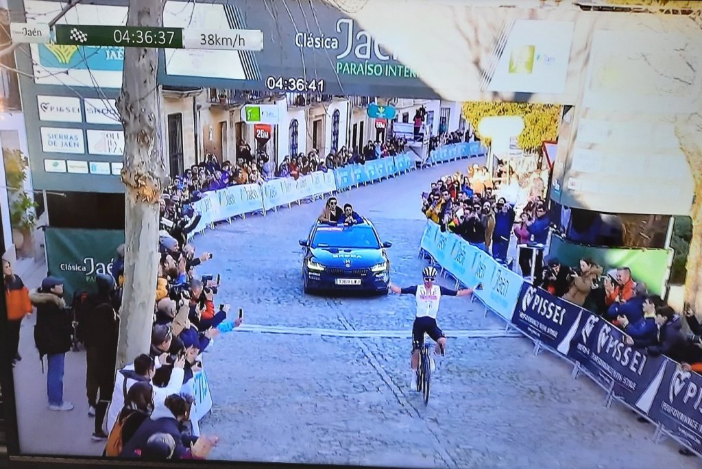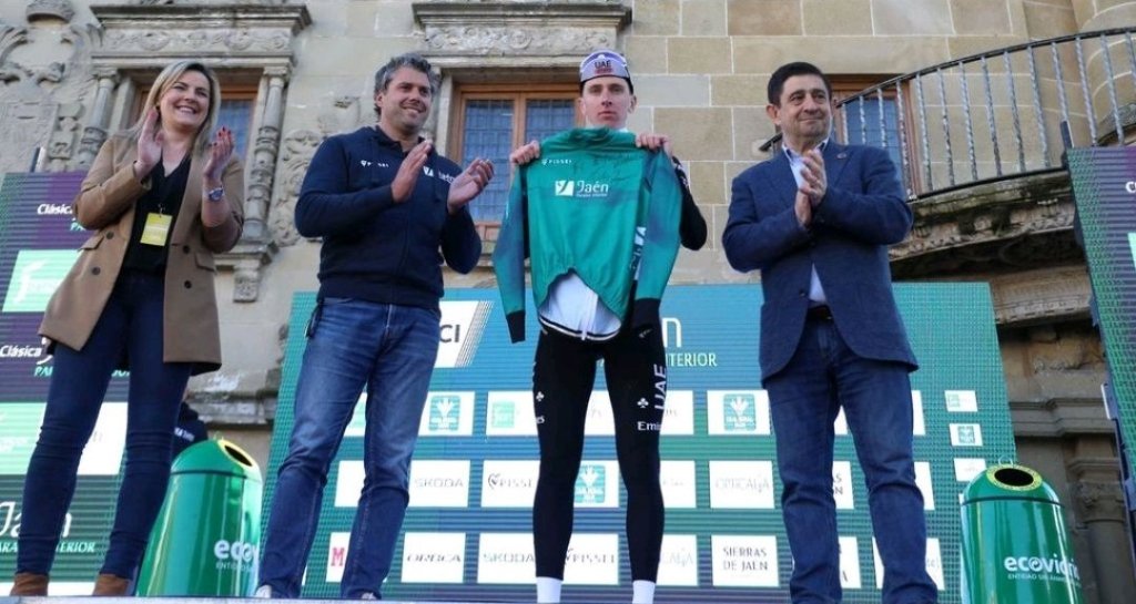 Tadej Pogacar (UAE) ha logrado el triunfo en solitario en la Clásica Jaén Paraíso Interior. A 40 kilómetros para el final se ha ido y nadie ha podido con él. Impresionante. Ni siquiera un pinchazo han impedido su triunfo. Primera carrera del año y primer triunfo. Por detrás, Ben Turner (Ineos) llegó en segunda posición por delante de Tim Wellens (UAE).