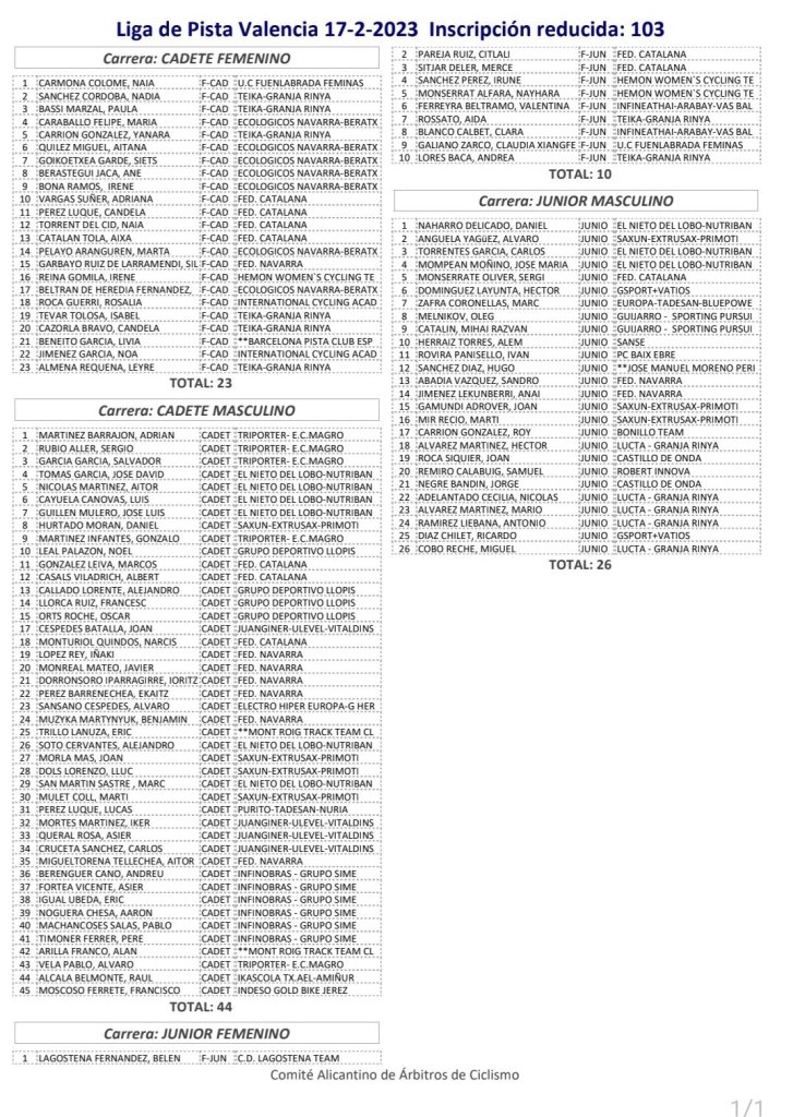 El Velódromo Luis Puig de València acoge hoy viernes la quinta manga de la Liga Nacional de Pista. Las pruebas comenzarán a las 15 horas y finalizarán a las 20. En total serán 103 los participantes en la competición: 67 cadetes (23 mujeres y 44 hombres) y 36 juniors (10 y 26, respectivamente).