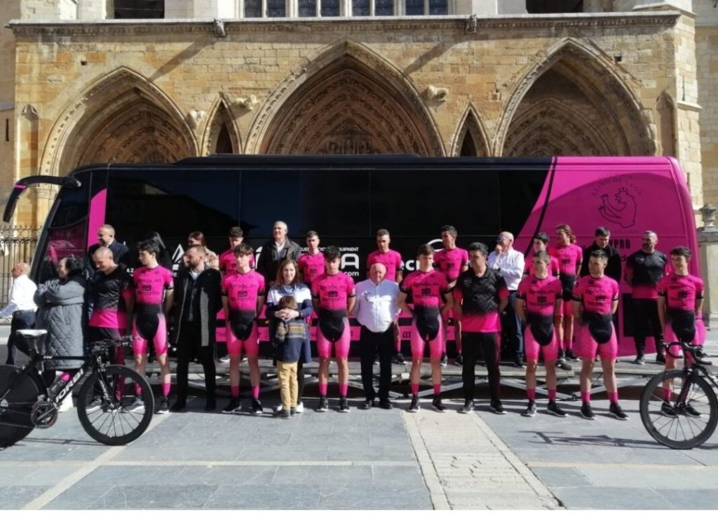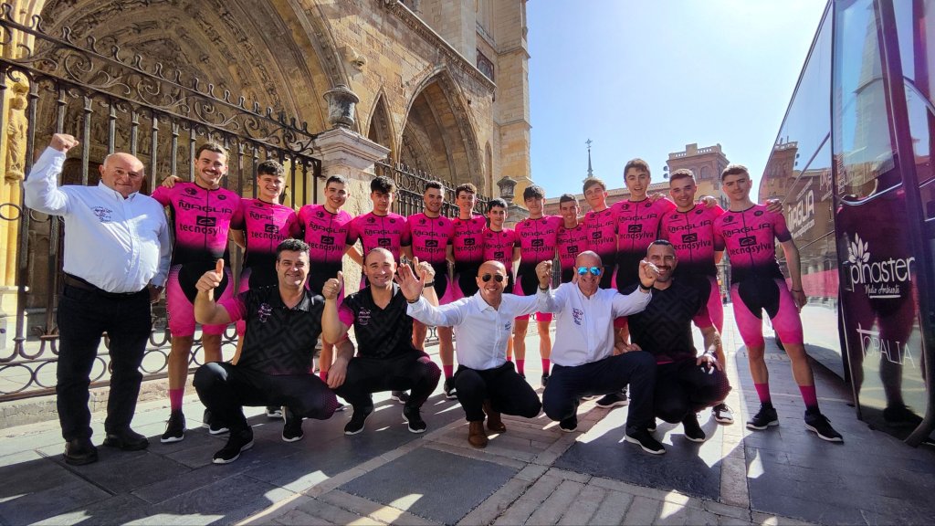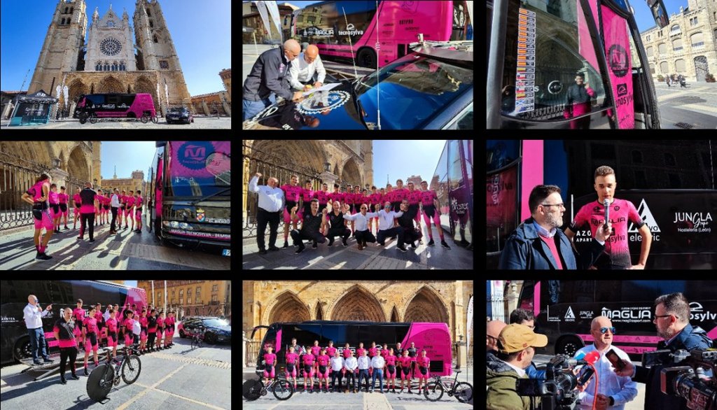 El Maglia Tecnosylva Bembibre de Javi Morante se ha presentado hoy con 17 ciclistas frente al marco incomparable de la Catedral de León. La empresa castellana Maglia, que da nombre al equipo, apuesta este año por una mayor presencia del rosa en su nuevo maillot. Jan Rodríguez, CEO de Maglia, destacó que «no podían faltar los colores de León un año más». Destacar que el objetivo de la escuadra es llegar a ser profesional en dos años.