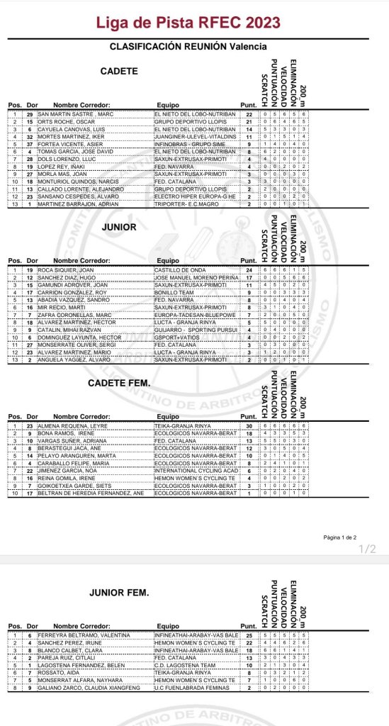 • 17 de febrero / Liga de Pista 2023 – G.P. Valencia, Comunidad Valenciana.