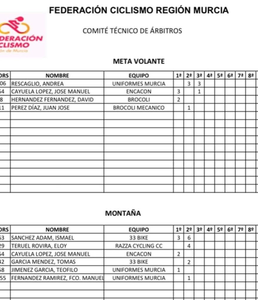 Domingo, 22 de enero. La Unión. Clasificaciones
