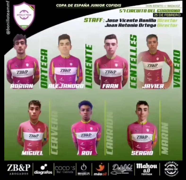 Este fin de semana, los días 25 y 26 de febrero, se disputa la 47 edición del Circuito Guadiana Gran Premio Alsat, competición valedera para la Copa de España Élite sub-23, Máster y Júnior. La prueba del pelotón juvenil tendrá lugar el sábado, a partir de las tres de la tarde. Entre los equipos participantes estarán los alicantinos: Lucta-Granja Rinya, Saxun Extrusax Primoti y Guijarro Sporting Pursuits. Luis Gerardo Álvarez dirigirá a Mario y Héctor Álvarez, Alejandro Baviera, Antonio Ramírez, Vicent Grau, Miguel Cobo y Jordi Richmon. Por su parte, los sajeños, con José Bernabé, Gabriel Loaiza y José V. Vidal desde el coche, competirán con el argentino Facundo Ambrossi, que debuta, Martí Mir, Gorka Verdú, Joan Gamundi, Álvaro Anguela, Daniel García y Álvaro Estevan. El Guijarro, con Pablo López y Guillermo Gisbert como técnicos, estarán con Nil Ivars, José Ramón Perles, Razvan Catalin, Darío Jover, Jaime Martínez y Pablo Castellano. Además, Miquel Sifre competirá con un Bathco Team que estará formado por Sergio Serrano, Arturo Barros, Jesús Ortiz, Alberto Requena, Marcos Freire y Rubén Sánchez. José Antonio Mantilla y Efraín Gutiérrez serán sus directores. El equipo cántabro ha estado concentrado este pasado fin de semana en Moraira preparando la nueva campaña. Por su parte, Adrián Ortega, Javi Valero, Fran Centelles, Roy Carrión, Sergio Martín, Alejandro Asensio y Miguel Cerveralo harán con el Bonillo bajo la dirección de José Vicente Bonillo y Juan Antonio Ortega.