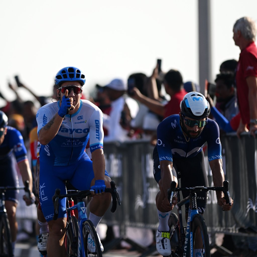 U sprint multitudinario decidió el vencedor de la 5ª etapa del UAE Tour, disputada este viernes entre la isla de Al Marjan y Umm al Quwain (170 km). El gran triunfador de la jornada fue Dylan Groenewegen. El holandés del Team Jayco AlUla se impuso por delante del colombiano Fernando Gaviria (Movistar Team) y el irlandés Sam Bennett (BORA-hansgrohe). En la clasificación general, el maillot rojo Remco Evenepoel se llevó 2 segundos de bonificación a 40 kilómetros de meta. El belga de Soudal Quick-Step ahora tiene un margen de 9″ sobre Luke Plapp (AUS / INEOS Grenadiers) y 13 sobre Pello Bilbao (ESP / Bahrain Victorious).