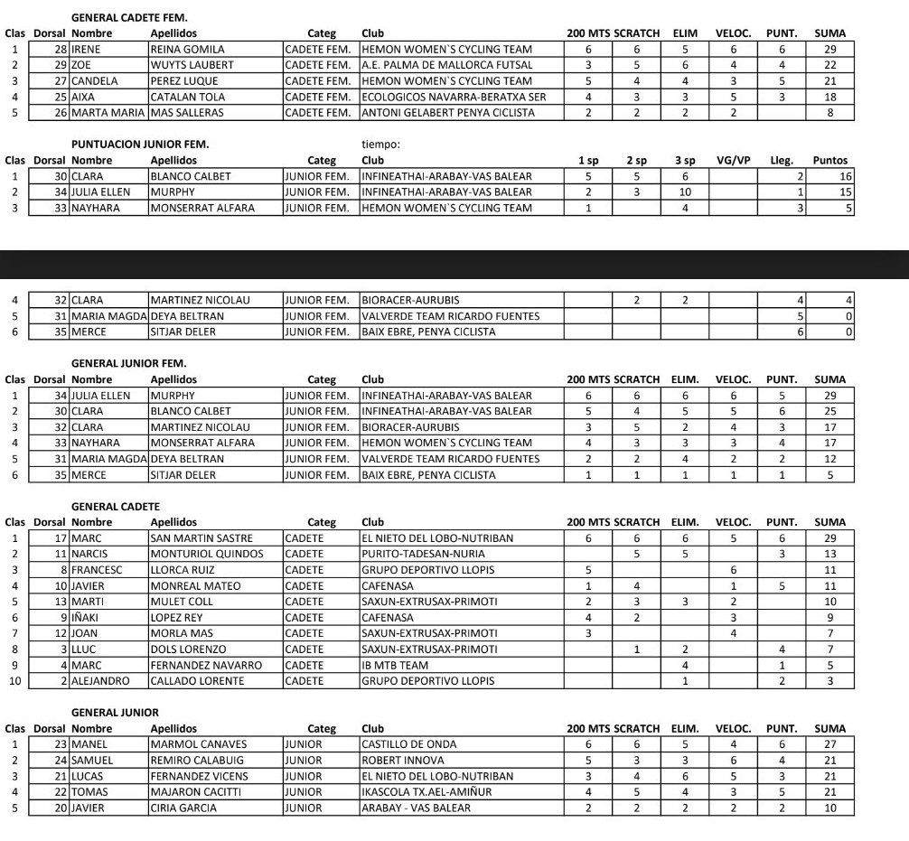 La victoria de Mámol venció en los 200metros, scratch y puntuación y no bajó del tercer puesto en las otras dos pruebas. Con ello totalizaba 27 puntos, frente a los 21 de tres corredores, Samuel Remiro (Robert Innova), Lucas Fernández (El Nieto del Lobo) y Tomás Majarón (Ikascola-AEL-Amiñur), que desempataron por sus resultados en las distintas pruebas, con triunfo de Remiro en la velocidad y de Fernández en la eliminación.