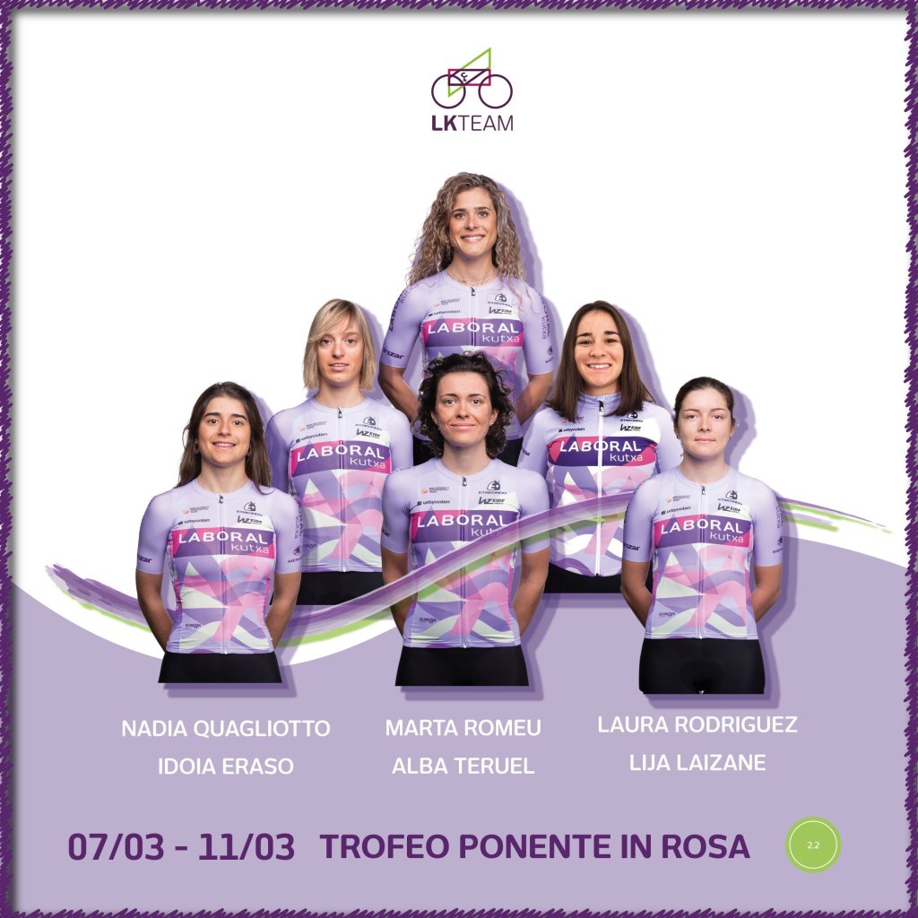 La Fundación LABORAL Kutxa-Euskadi comenzó el martes su participación en el Trofeo Ponente in Rosa y hoy no ha salido la segunda etapa que unía Diano Marina y Loano, de 96 kilómetros de recorrido. Ayer ya fue cancelado el primer sector de la etapa inicial, el problema, según informan desde Italia, por seguridad. El motivo ha sido la falta de permisos de la zona por la que iba a discurrir la carrera. La escuadra vasca está formada por Idoia Eraso, Lija Laizane, Nadia Quagliotto, Laura Rodríguez, Marta Romeu y Alba Teruel.
