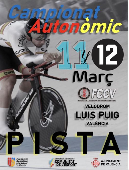 El Campeonato Autónomico Pista Comunitat Valenciana se celebrará el 11 y 12 de marzo en el Velódromo Luis Puig de València con la presencia de 115 participantes. Entre los pistards presentes figuran entre otros Alejandro Gómiz (Froiz), Aarón Merenciano (Esetec-Salazones Fuentes) y José Segura (Azulejos La Torre), en la categoría Open; los júniors Mario y Héctor Álvarez y Antonio Ramírez (Lucta-Granja Rinya), Roy Carrión (Bonillo Team), Héctor Domínguez (GSPort+Vatios), Oleg Melnikov y Mihai Razvan Catalin (Guijarro Sporting Pursuit) y los cadetes Alejandro Callado y Oscar Orts (GD Llopis) y Eric Igual (Infinobras). En féminas, Melisa Gómiz, Esthefanía Hurtado, Andrea y Daniela Grañana, Lucía Rodríguez, Leyre Almena, Leyre Toledo, Candela Cazorla, Paula Carrión y Vera Valero. Lista de Inscritos.