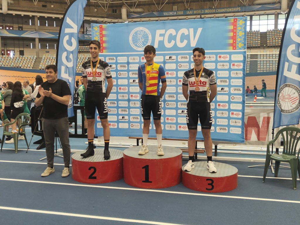 El Velodromo Lluis Puig de Valencia ha sido escenario hoy de la primera jornada del Campeonato de la Comunidad Valenciana de pista para todas las categorías, en la que se han puesto en juego los títulos de velocidad, persecución, scratch y keirin. David Lucas (Alfaz), Roy Carrión (Bonillo Team), Eric Igual (Infinobras), Daniela Grañana (Teika Granja Rinya) y Leyre Toledo (Teika Granja Rinya) se ha proclamados campeonas en Velocidad. Agustín Sebastiá (Hostal Latorre), Antonio Ramírez (Lucta-Granja Rinya), Órcar Orts (GD Llopis), Daniela Grañana y Leyre Almena (Teika), en Persecución. Y Lucas, Carrión, Orts, Daniela Grañana y Valero, en Keirin. José Segura, Ramírez, Callado y Almena en Scratch.