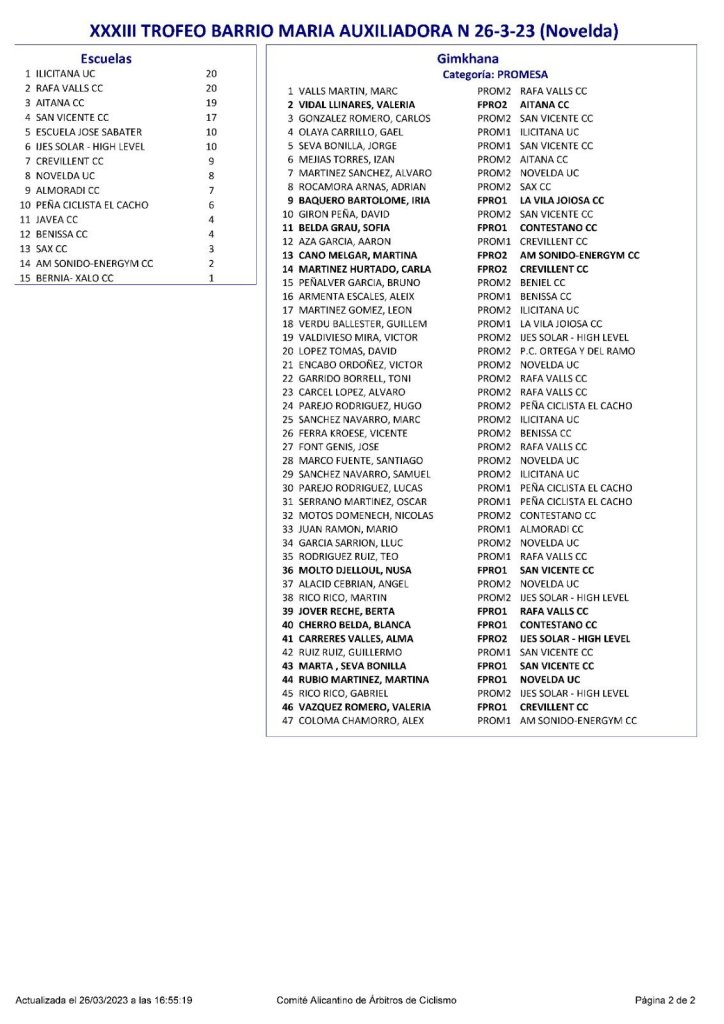 En Adaptado, triunfo de Adrián Payá (Novelda). En Gymkhana, Gael Olaya e Iria Baquero vencen en Promesas 1; y Marc Martín (Rafa Valls) y Martina Cano (AM Sonido), en Promesas 2.