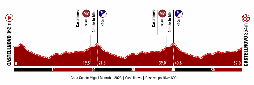Cerrará la Copa Cadete Miguel Manrubia la localidad de Castellnovo y sus 57 kilómetros con dos subidas puntuables al Alto de la Mina. La última oportunidad de levantar los brazos y de pelear por el triunfo en la competición, en las tres vueltas que realizarán los ciclistas.